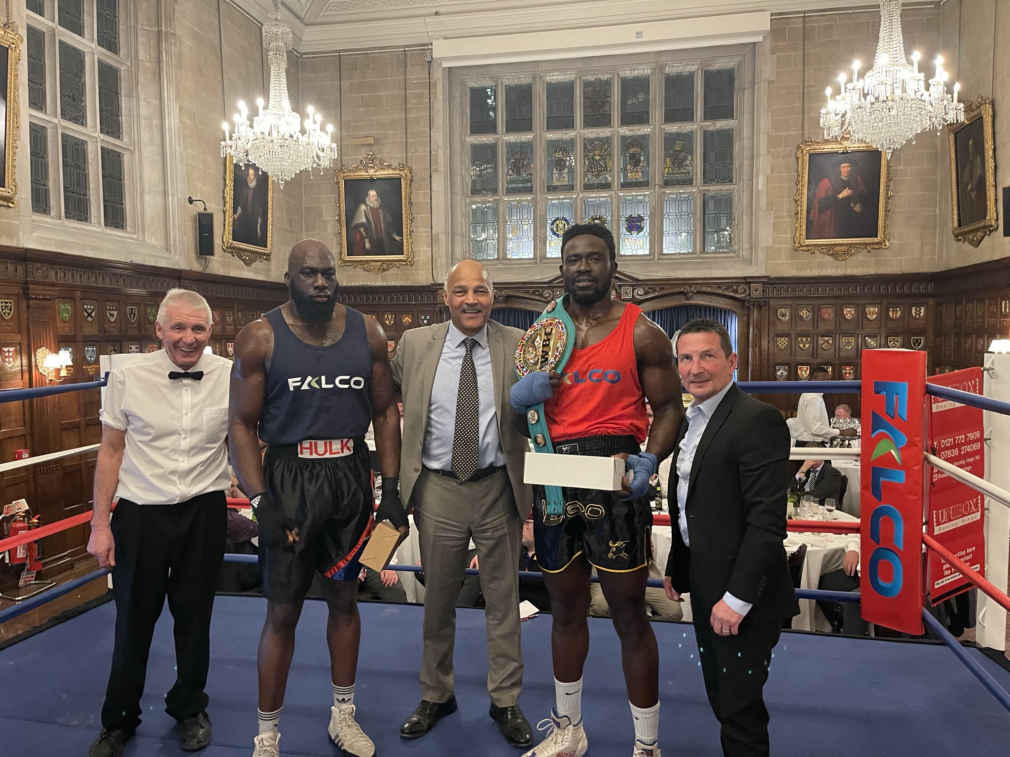 Falco’s two tables featured a mix of management staff and clients who enjoyed the company and stories throughout the night of their special guest John Conteh MBE. The former WBC World Light Heavyweight Champion, who retired in 1982, is a regular attendee of Falco’s corporate hospitality events. Former British Flyweight Champion Micky Cantwell also attended the event and joined John in the ring for the winner’s presentations.