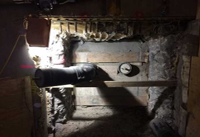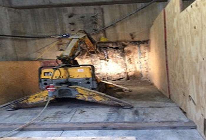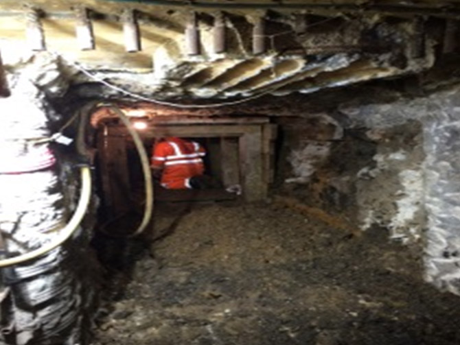 There was also an additional reinforced concrete footing. This was removed using a one-tonne mini digger with breaker and hand held tools for trimming. In total there was concrete over three metre length of the heading.