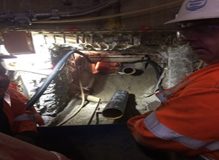 Once the sewer was reached two 300mm diameter cores were drilled in the sewer to form the connection points. Two 225mm Cast iron pipes were installed in the cores and made good with sand and cement. The heading was then piped and packed and the soffit grouted.