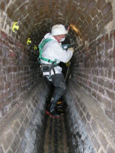Using desk analysis and site-surveying we were able to prepare detailed plans which identified the access points (manholes) and route using underground man entry sewers. Safety is a critical aspect of this type of work and all of our survey and operational teams have the necessary CP1 and CP2 confined spaces training accreditations to access the underground water network to install colour-coded cable ducting which were affixed to the tunnel walls.