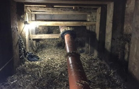 This was replaced with a new Vitrified Clay Pipe and connected to the mains trunk sewer. The timber heading was carefully backfilled with foam concrete and the shaft backfilled and reinstated.