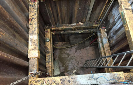 The works involved machine and manual techniques. Using a 14-tonne excavator we excavated a 2.4 sqm shaft to a depth of six metres in the carriageway and a 6.5 metre timber heading was hand-dug to locate the damaged pipe.