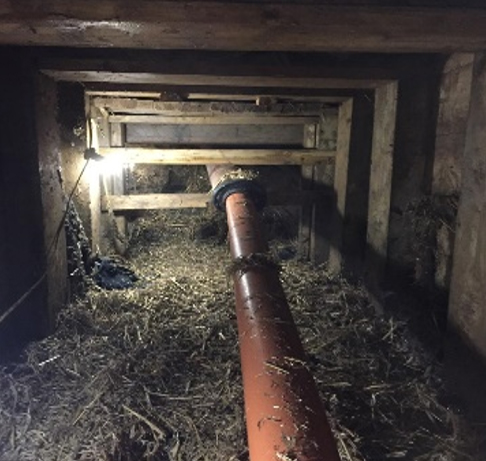 This was replaced with a new Vitrified Clay Pipe and connected to the mains trunk sewer. The timber heading was carefully backfilled with foam concrete and the shaft backfilled and reinstated.