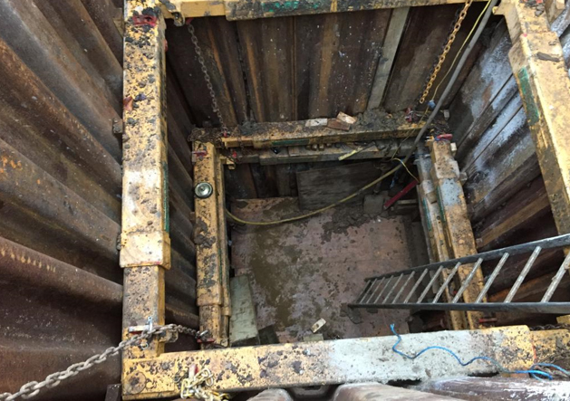 The works involved machine and manual techniques. Using a 14-tonne excavator we excavated a 2.4 sqm shaft to a depth of six metres in the carriageway and a 6.5 metre timber heading was hand-dug to locate the damaged pipe.