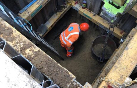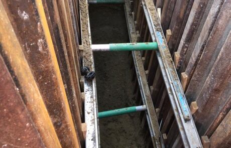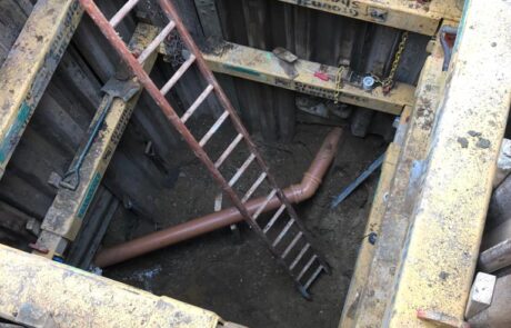 In Jan 2018 Morrison Utilities Services and GallifordTry Joint Venture (MGjv) commissioned Falco to install 150 FLIPs at Counters Creek. The project involved careful planning to gain access to the water infrastructure. Deep shafts with varying support techniques and temporary works were excavated in a variety of locations. If a suitable location in the resident’s premises (front gardens, lightwells, basements) was not feasible an excavation of up to 7 metres was carried out in the street between the kerb and sewer line.
