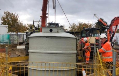 The works included the construction of a retaining structure to support the excavation of a chamber, allowing dewatering and installation of a new pumping station. The works had previously been tendered by another contractor and site work commenced but were aborted due to difficulties in management of the groundwater to allow full depth excavation and chamber installation.