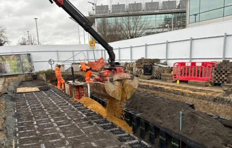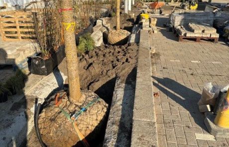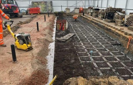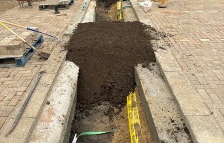 Additional works were instructed by the client to carry out tree pits works within the site hoarding. This involved the excavation and installation of tree a tree pit system to provide, irrigation drainage and root management to trees in the planting areas