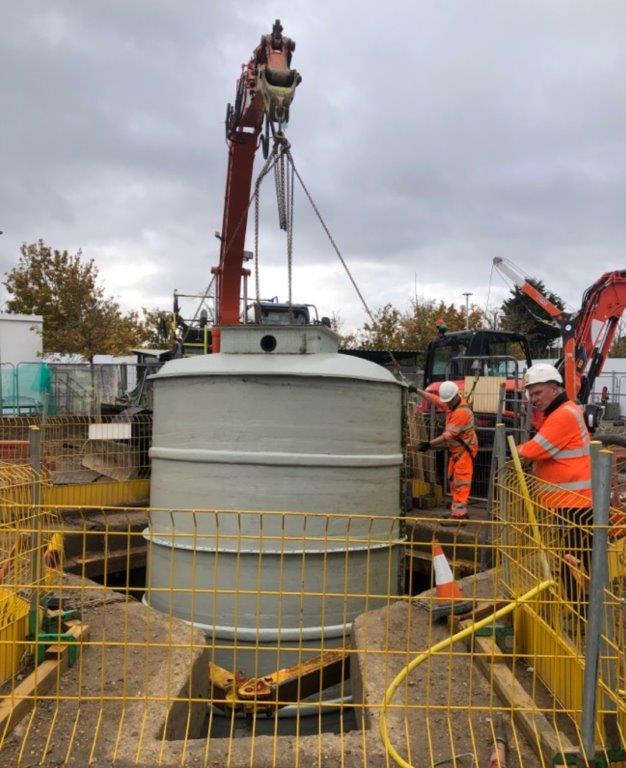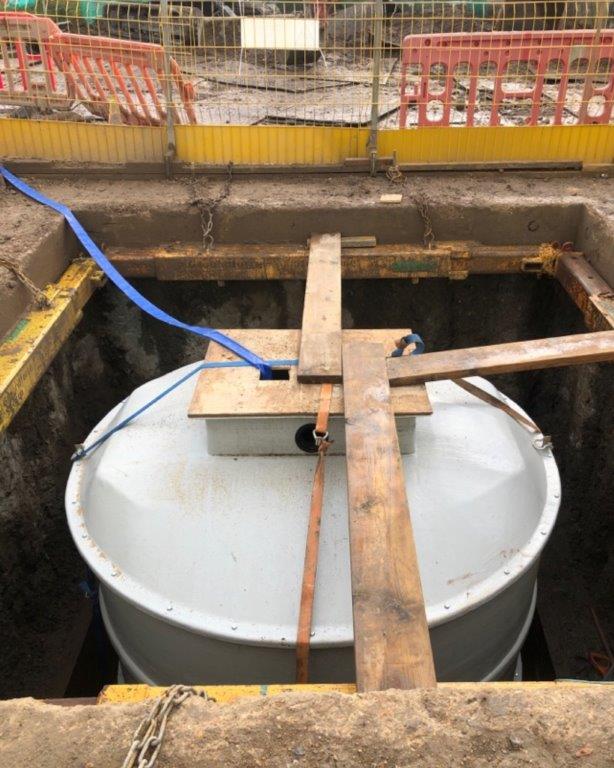 The works included the construction of a retaining structure to support the excavation of a chamber, allowing dewatering and installation of a new pumping station. The works had previously been tendered by another contractor and site work commenced but were aborted due to difficulties in management of the groundwater to allow full depth excavation and chamber installation.